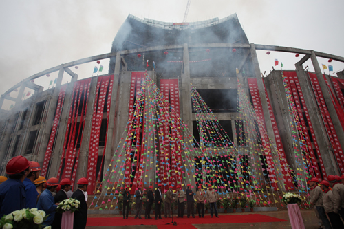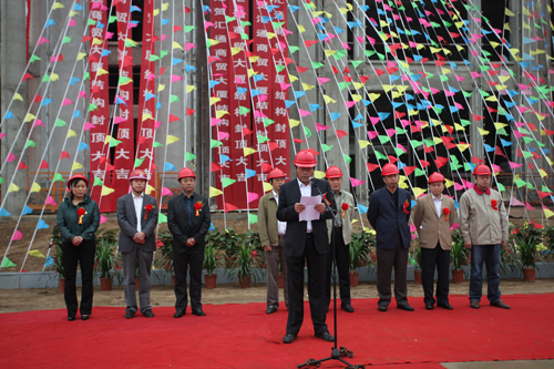 10月16日上午,山東匯通國際金屬物流園內(nèi)禮花飛舞,鞭炮齊鳴,匯通國際金屬商貿(mào)大廈喜封金頂。中國一冶集團(tuán)公司副總經(jīng)理田國清、集團(tuán)公司董事長賀懷智、蔣官屯辦事處主任劉東華分別致辭。