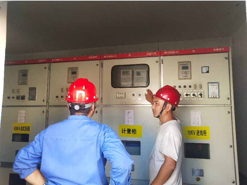▲檢查電力設備,保障汛期電力供應正常