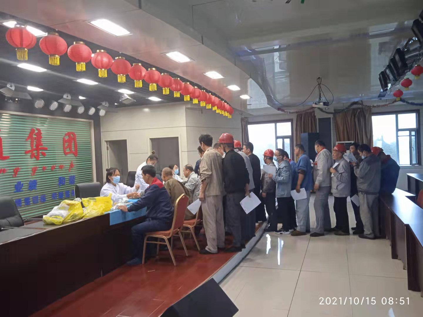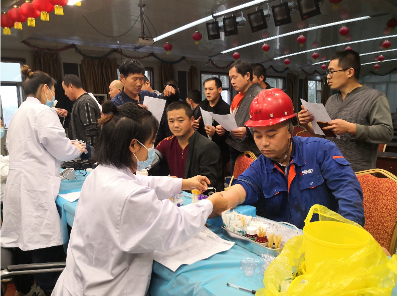 ▲醫(yī)務(wù)人員正在為職工進(jìn)行抽血