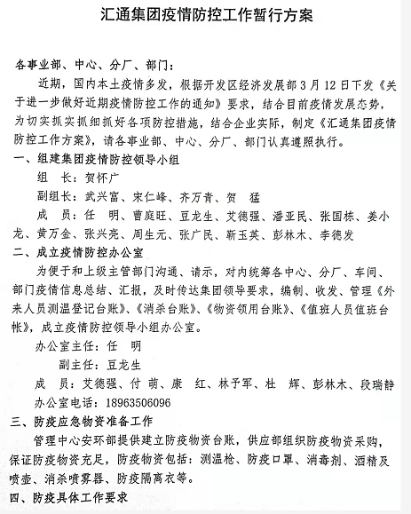 針對(duì)當(dāng)前復(fù)雜的疫情防控形勢(shì),匯通集團(tuán)始終把疫情防控作為頭等大事,堅(jiān)持“寧可十防十空”,堅(jiān)決不能掉以輕心,落實(shí)好常態(tài)化疫情防控各項(xiàng)舉措,切實(shí)保護(hù)好員工生命安全,保障生產(chǎn)經(jīng)營(yíng)順利,做到疫情防控、生產(chǎn)經(jīng)營(yíng)兩不誤。