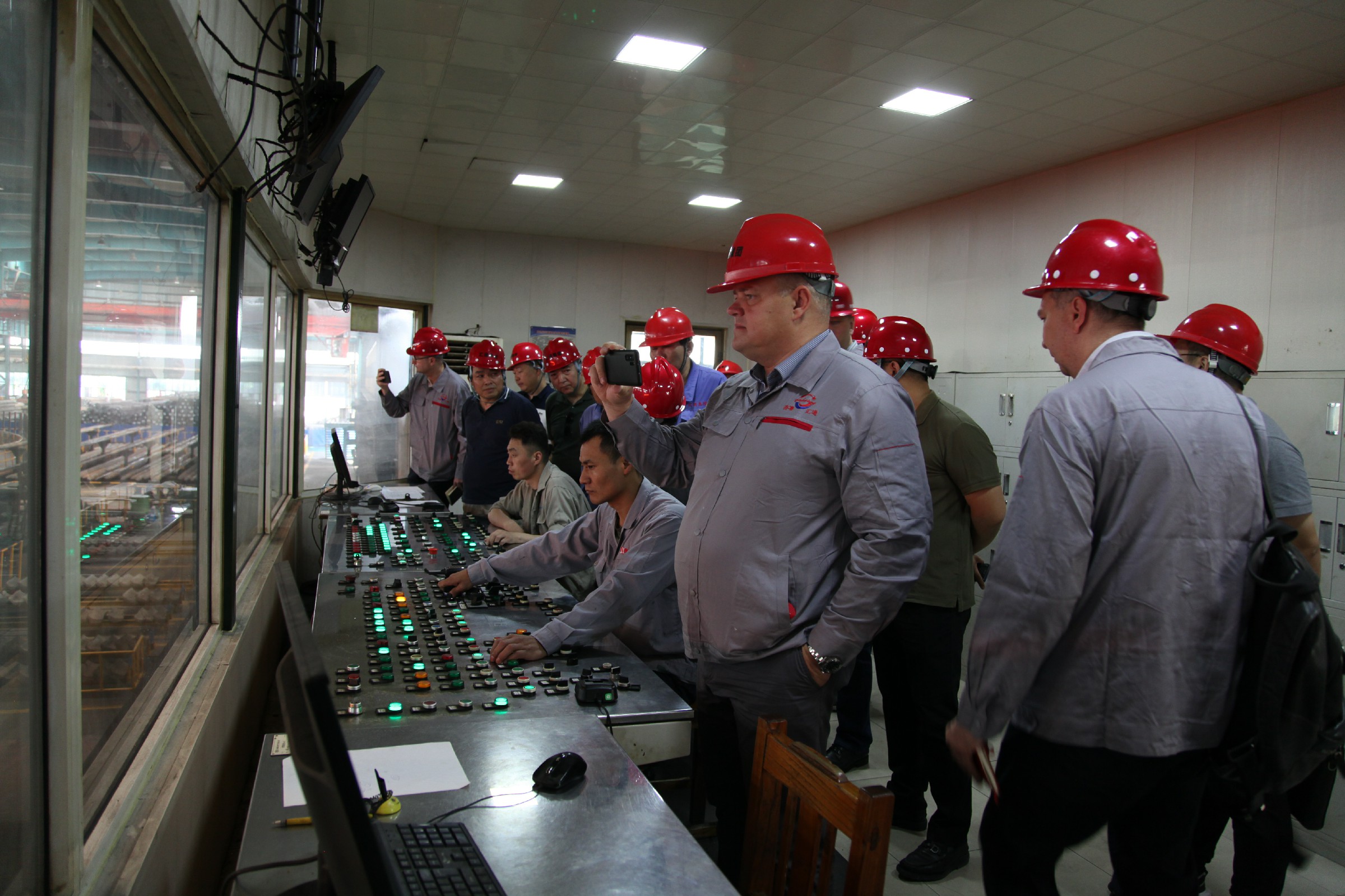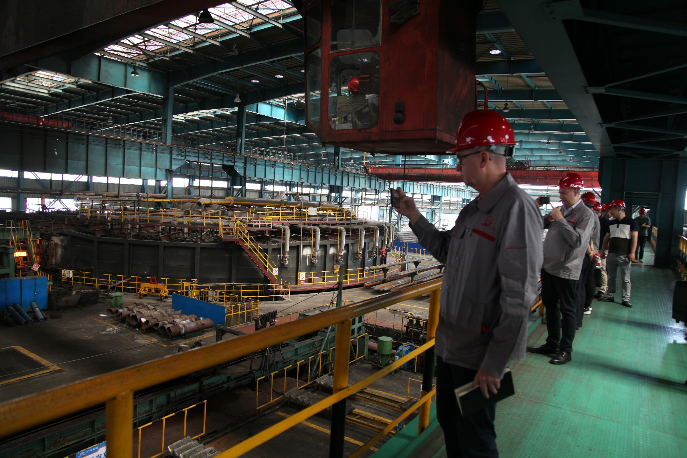 在Φ273生產(chǎn)車間,代表團(tuán)一行認(rèn)真觀摩了現(xiàn)有的自動(dòng)化生產(chǎn)系統(tǒng)。董事長(zhǎng)賀懷芝介紹說(shuō),作為主營(yíng)業(yè)務(wù)板塊,集團(tuán)擁有國(guó)內(nèi)先進(jìn)的熱軋無(wú)縫鋼管生產(chǎn)線5條、冷拔、冷軋機(jī)組30臺(tái)套,熱處理線3套,擁有產(chǎn)能近85萬(wàn)噸。所生產(chǎn)、銷售的鋼管產(chǎn)品不僅輻射全國(guó)外,還遠(yuǎn)銷東南亞、中東、歐洲和美洲。賀總希望以此次參觀考察為契機(jī),能夠與TMK集團(tuán)進(jìn)一步加強(qiáng)聯(lián)系,激發(fā)合作潛能,實(shí)現(xiàn)互惠共贏,促進(jìn)共同發(fā)展。