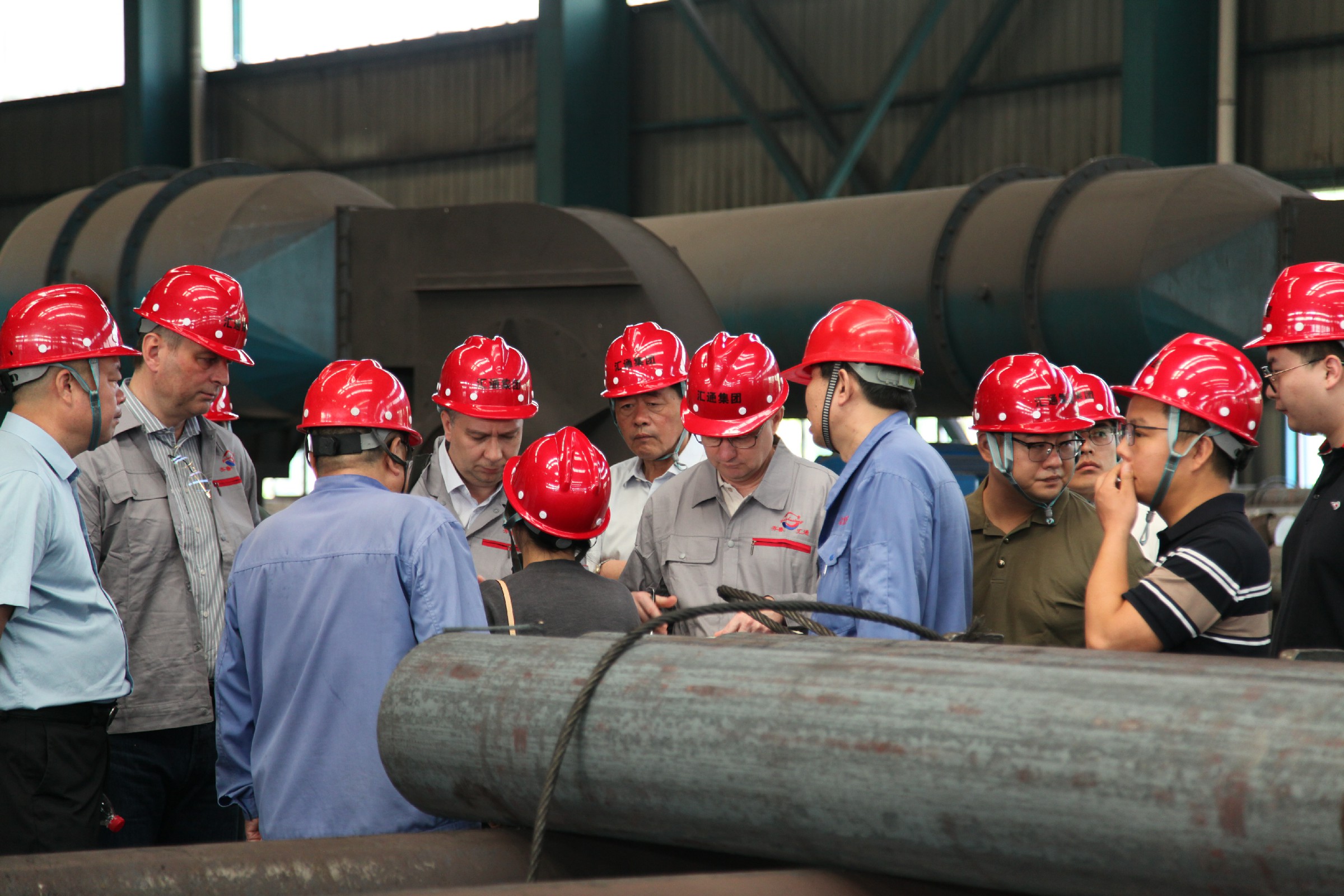 6月27日上午,俄羅斯TMK集團(tuán)代表團(tuán)在中國(guó)重型院(原西重所)機(jī)械、工藝總工程師丁鋒和海外項(xiàng)目開(kāi)發(fā)經(jīng)理安啟航的陪同下,蒞臨匯通集團(tuán)參觀考察。集團(tuán)董事長(zhǎng)賀懷芝、總經(jīng)理賀懷廣,副總經(jīng)理?xiàng)顚W(xué)洪、賀猛、齊萬(wàn)青陪同參觀。