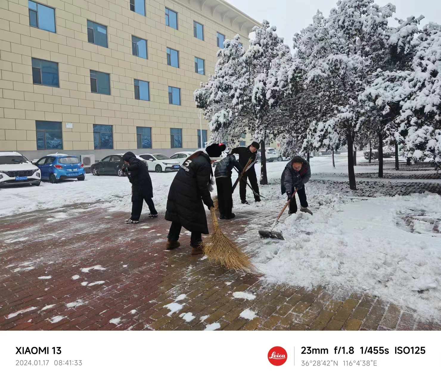 1月16日,聊城迎來2024年的首場降雪。持續一夜的大雪給集團園區披上了一層素裝,分外美麗。在感受瑞雪美景的同時也給集團運營、員工出行帶來極大的不便,為有力應對降雪影響,匯通集團第一時間組織開展掃雪除冰行動。